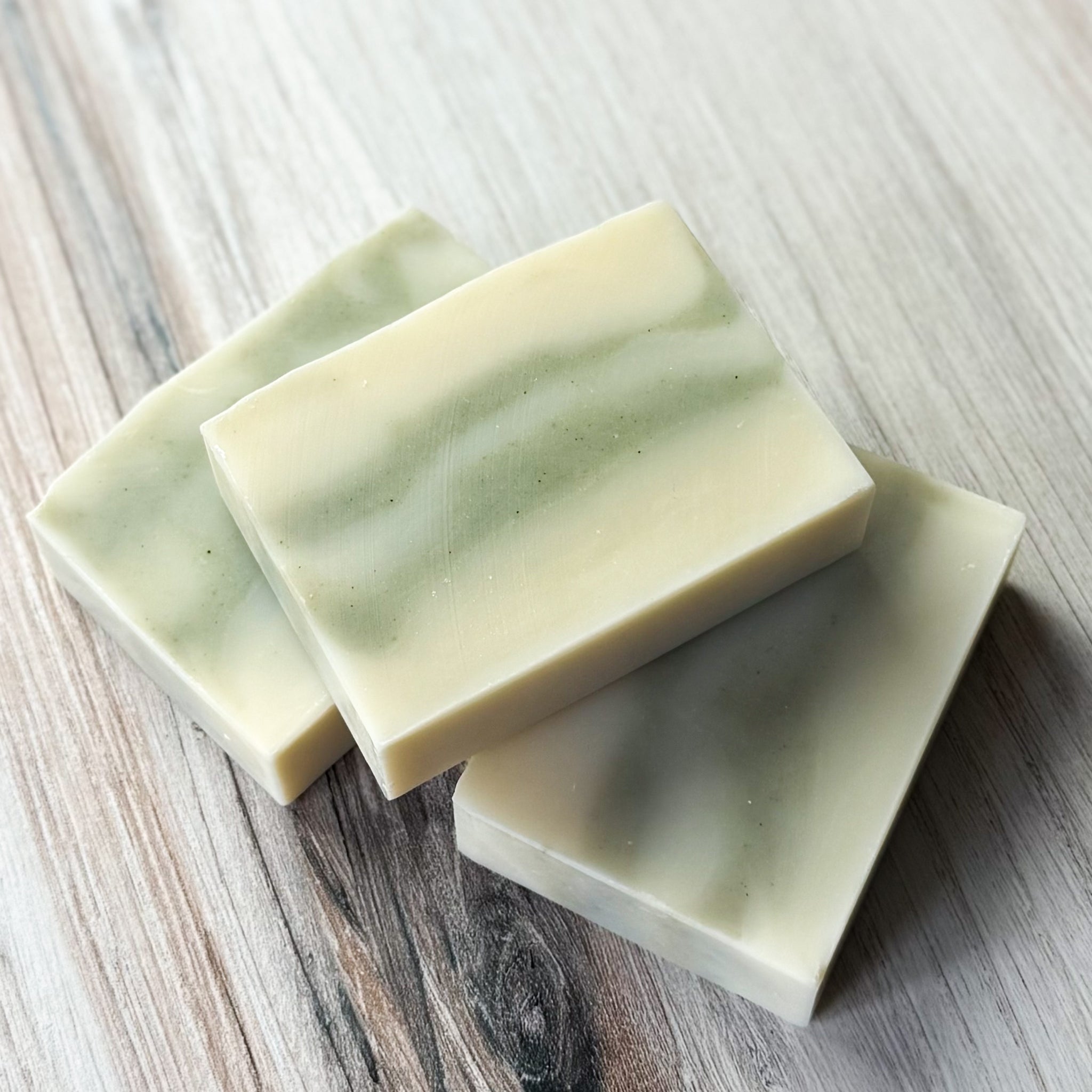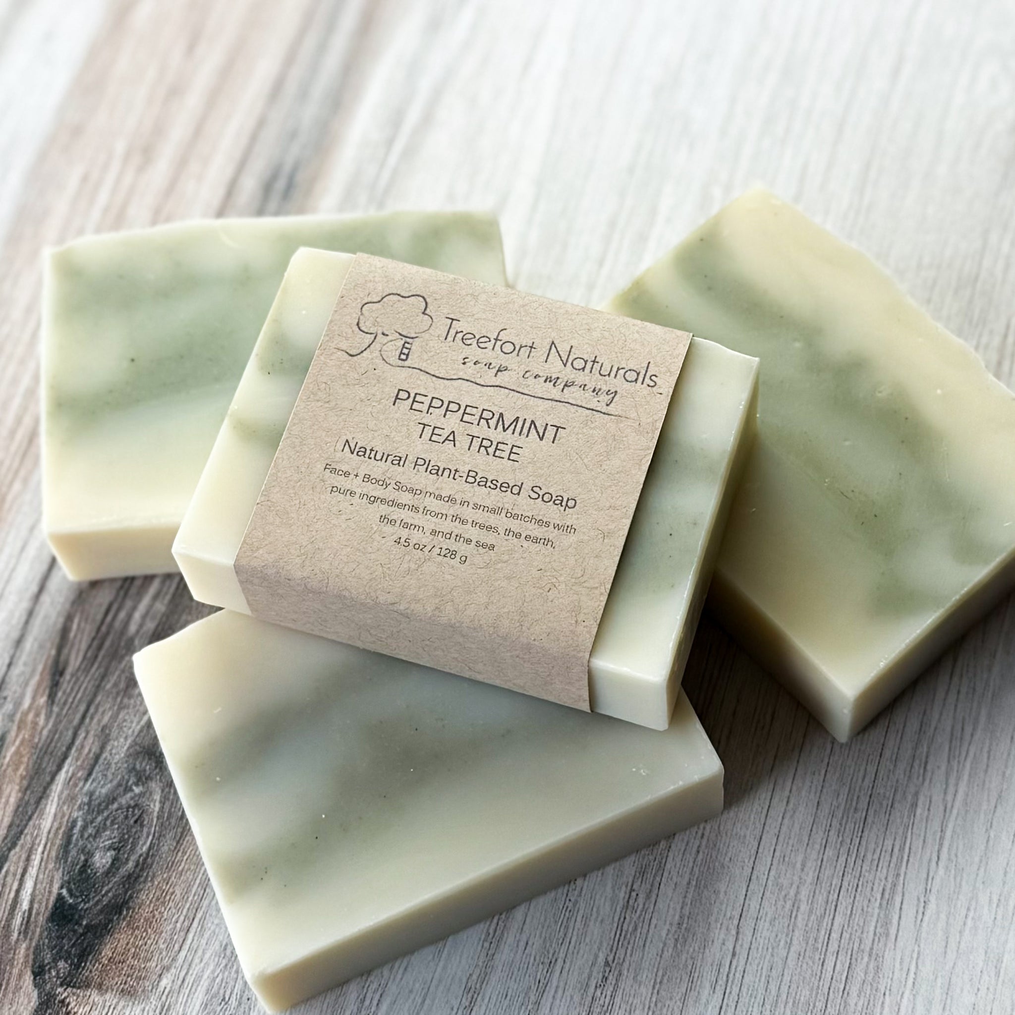 Ingredients: Saponified Oils/Butters of Olive, Coconut, responsibly-sourced Palm, Sunflower, and Shea, Peppermint Essential Oil, Coconut Milk, Tea Tree Essential Oil, Spirulina Powder, Kale Powder, Activated Bamboo Charcoal